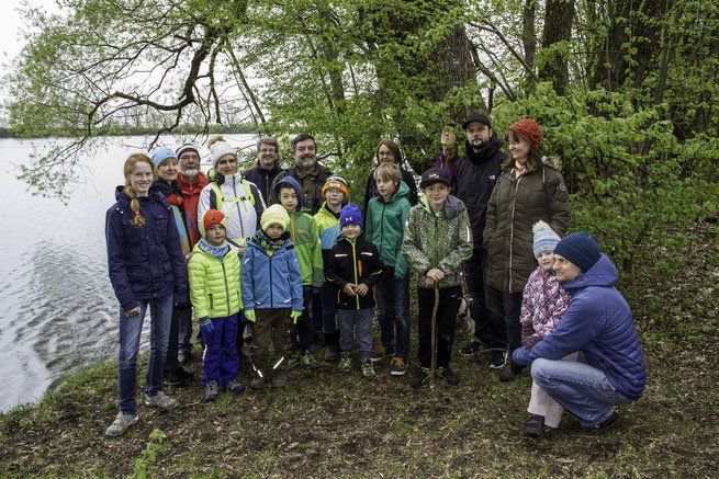 Der Kinderschutzbund Wartenberg veranstaltete am Samstag, 22.4.2017, eine Morgenwanderung rund um den Thenner See. 9 Kinder und 10 Erwachsene scheuten nicht das frühe Aufstehen –mancher mit etwas bleichem Gesicht- und trafen sich mit Dr. Christian Magerl, um den Weiher einmal zu umrunden und auf das unterschiedliche Zwitschern der Vögel zu lauschen. Kurz nach dem Start konnten die Teilnehmer schon einige Vögel hören: neben dem Buchfink und der Mönchsgrasmücke zwitscherte auch der Fitis, ein für alle unbekannter, aber doch häufig anzutreffender Vogel. Sehr einfach war es, den Zilp-Zalp zu erkennen: dieser Vogel singt einfach seinen Namen! Bevor es dann zum See ging, zeigte Dr. Christian Magerl, promovierter Vogelkundler, den Teilnehmern die Flugbewegungen der Flussseeschwalben, die hoch über dem See und dem Isar-Kanal flogen. Sie heißen zwar Schwalben, sind aber Möwen und lieben die leckeren Fische am Thenner See. Deswegen nehmen sie auch den Weg aus Berglern oder Moosburg nach Wartenberg in Kauf, sind dabei recht schnell am Ziel, da sie mit ca. 60 Stundenkilometern unterwegs sind. Am See konnte man dann den Haubentaucher und einige Stockenten beobachten; leider war noch kein Blässhuhn zu sehen. Dafür schwamm seelenruhig ein Paar Gänsesäger vorbei. Der Schnabel dieser Enten ist wie eine Säge gerippt, damit ihnen die gefangenen Fische nicht wieder aus dem Schnabel rutschen.