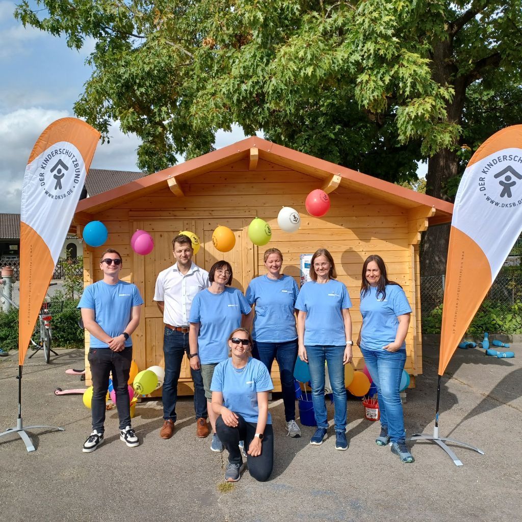 Schon einige Tage später wurden zwei Streetbuddys vom Kinderschutzbund aufgestellt und die Gemeinde hat mit großen Zahlen auf der Straße auf die Geschwindigkeitsbeschränkung von 30 km/h hingewiesen. Zusätzlich wurde von der Gemeinde eine große Absperrung zwischen Spielplatz und Straße installiert, so dass die Unfallgefahr weiter minimiert werden konnte.